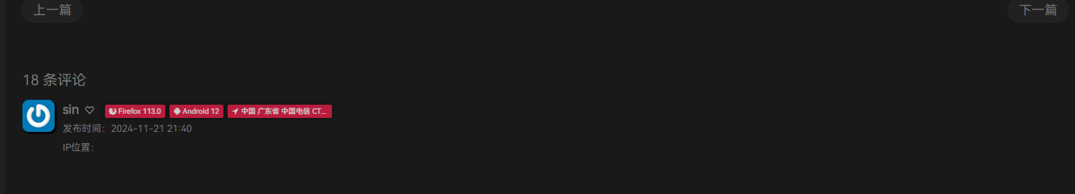 • @Southerly handsome 9.2.1 版本应该是添加在 /usr/themes/handsome/component/comments.php:101 处,示例如下:https://pic1.miui.uk/images/2023/11/29/b82ceea5427e904fe2f94658290d940b.png