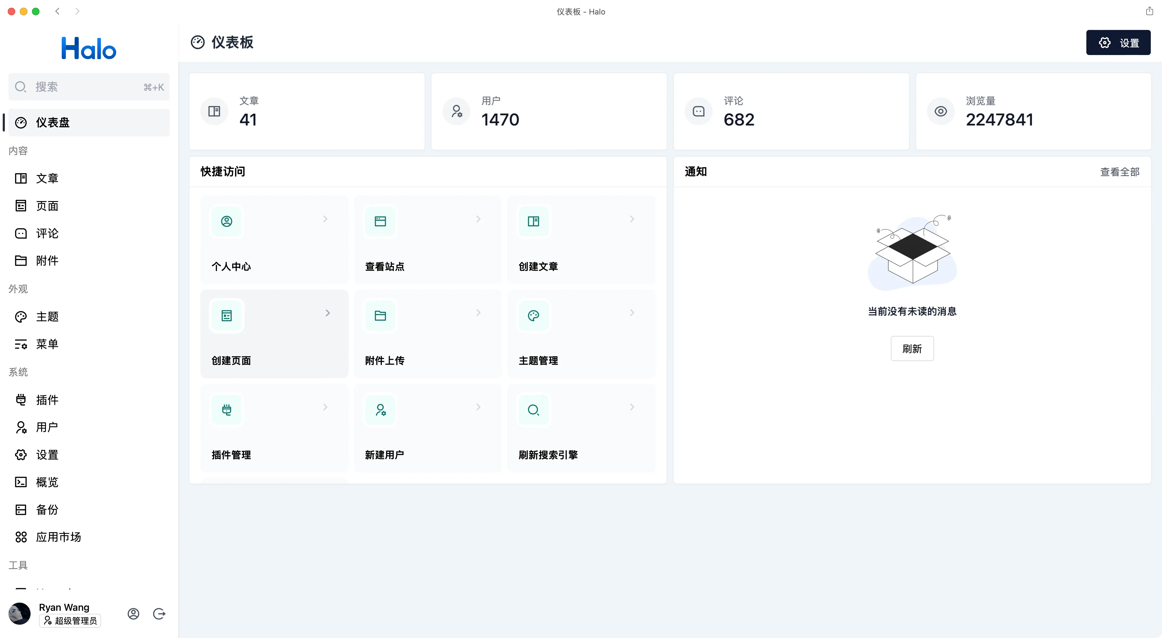 • 简洁易用:Halo 的界面设计简洁清晰,使用户能够快速上手并轻松管理网站内容。